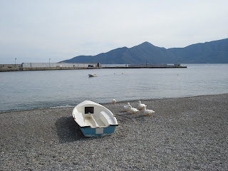 Quite a climb, but worth it for our first ruins. Then a well earned lounging on the beach, and yes, the water is not at all cold! We saw the same swimmers. Tried another taverna facing the beautiful waters, where they knew Agnes, and besides the kalamari and the long awaited big bean dish, the landlady gave us a bag of organic produce - about 2kg tomatoes, 4/5 cucumbers, grapefruits, tangerines, lemons.